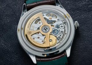 Best clone Rolex watches pairs the platinum 1908 with a matte brown or black alligator strap and a platinum deployant clasp, lined green on the inside. Rolex calls the collection 1908 in reference to the year in which Hans Wisdorf trademarked the term “Rolex,” but it actually takes inspiration from later vintage Bubblebacks. In 2023, Rolex displayed this vintage Bubbleback at Watches & Wonders, implying that it took inspiration from models like it for the 1908. The influence is clear in the dial layout and numerals, even if there’s no denying the superior charm of a vintage Bubbleback.